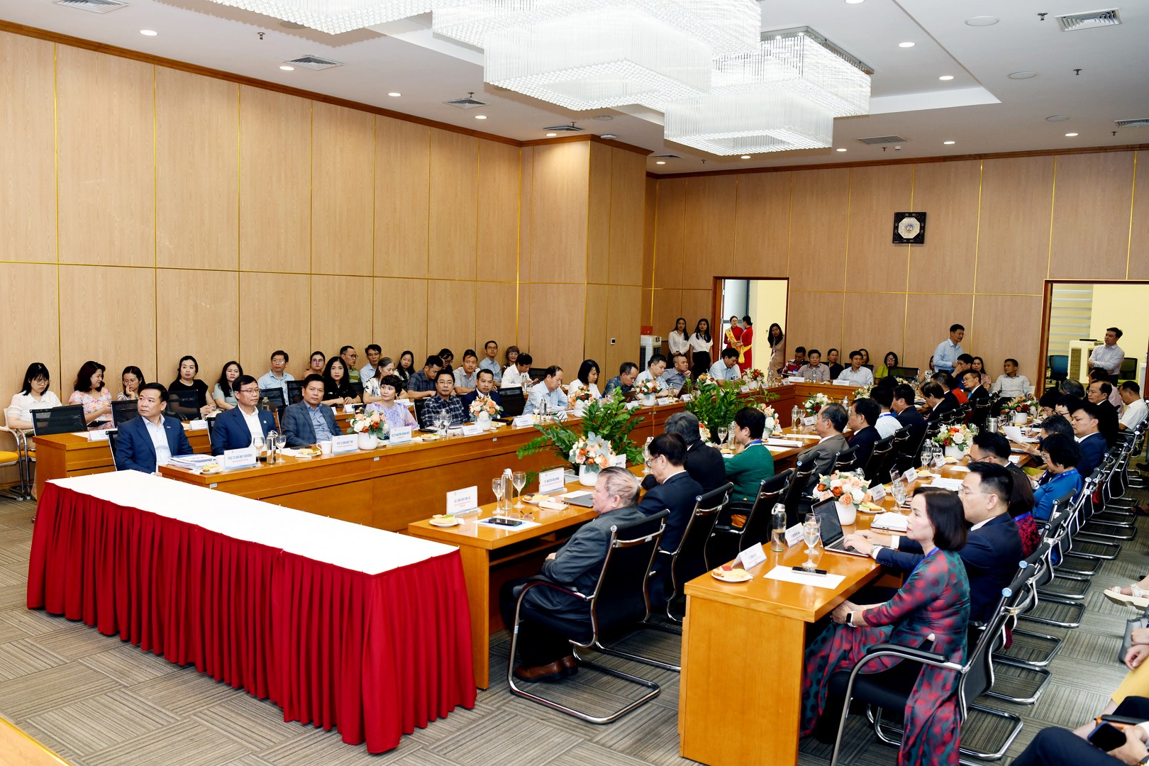 Về phía Đại học Kinh tế Quốc dân có: PGS.TS Bùi Huy Nhượng - Giám đốc Đại học; PGS.TS Bùi Đức Thọ - Bí thư Đảng ủy, Chủ tịch Hội đồng Đại học; GS.TS Nguyễn Thành Hiếu - Phó Giám đốc Đại học; TS. Đàm Sơn Toại - Trưởng phòng Khảo thí & Đảm bảo chất lượng giáo dục; cùng đại diện lãnh đạo các Trường, Phòng ban, Khoa, Viện, Trung tâm; các cán bộ, chuyên viên của Đại học.